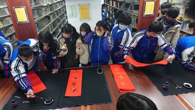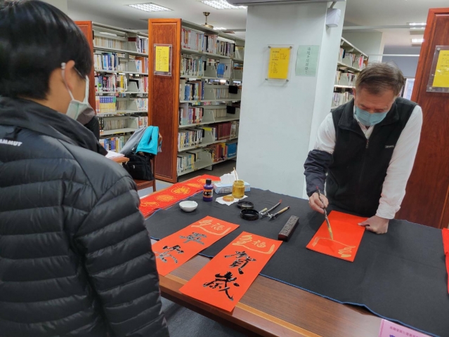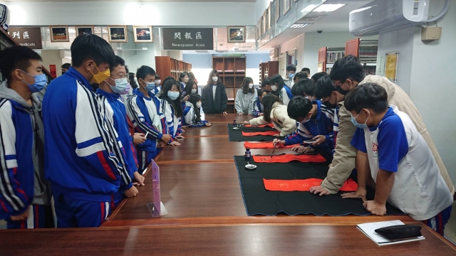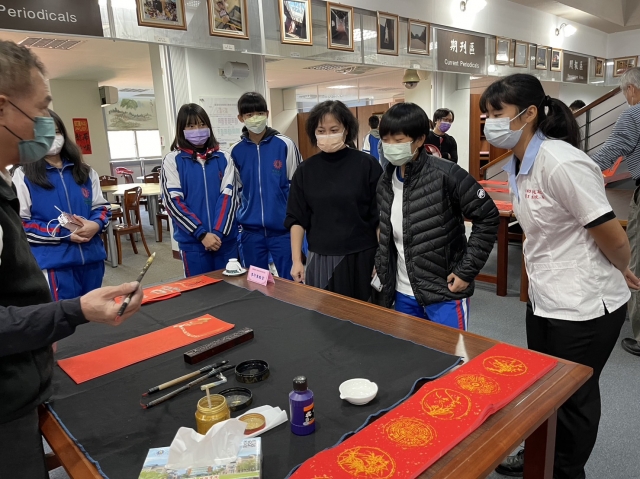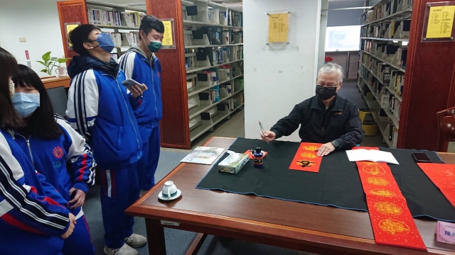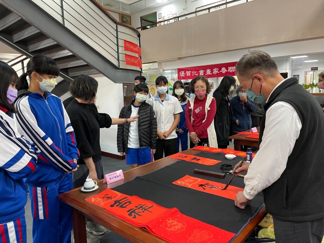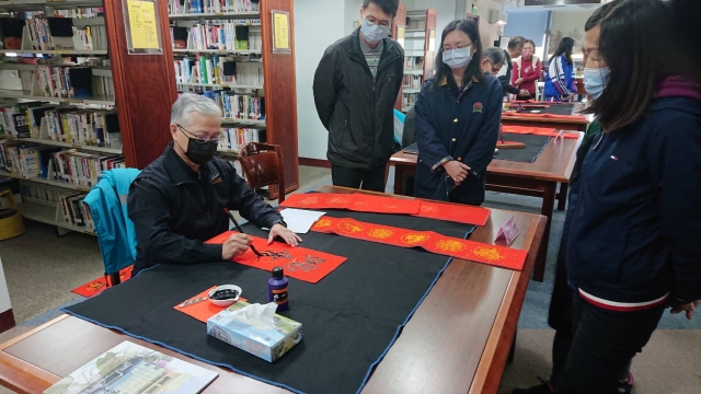 、前國立埔里高中退休李印章主任教官蒞校指導,三位教官平時精於書法的寫作,對於書法有非常獨特的能力及見解,本次邀請除現場春聯揮毫教學之外,更教導師生如何書寫春聯,大家受益良多,達到寓教於樂之目的,也藉此達成營塑學校校園藝文氛圍,美學素養融入校園環境的目標。