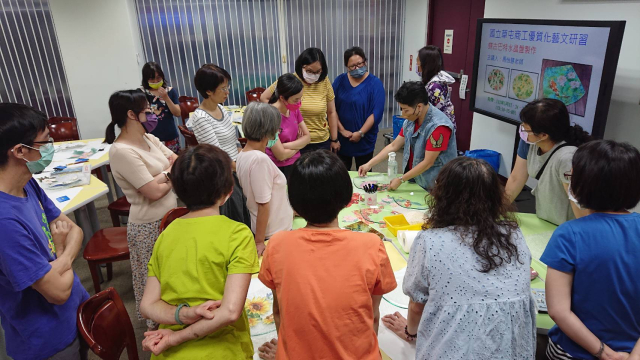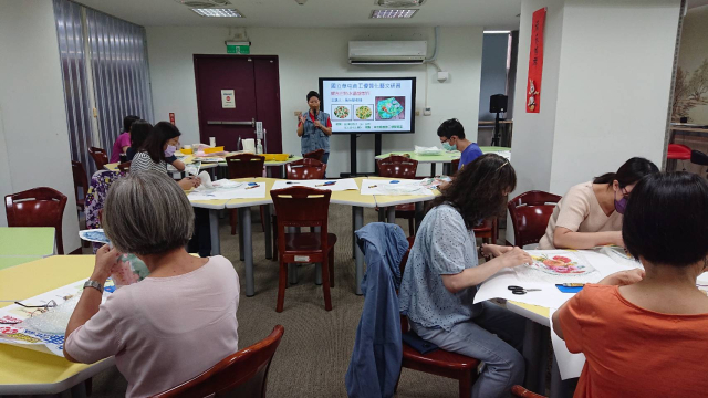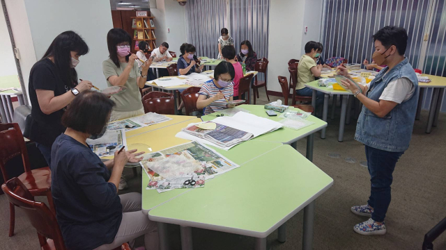 本次辦理二梯次蝶古巴特玻璃盤製作藝文研習,計有60人次參加。邀請蒂瑪創意設計工作室負責人馬怡慧老師擔任講解及示範,藉以提升學員對蝶古巴特手作的認識與學習的興趣,啟發師生參與藝文活動的動機,本次以玻璃水晶盤為主題,加上對不同紙張材料及金箔的施作,創造出歐風典雅的水晶盤,展現出個人創意的作品風格,達到寓教於樂之目的,也藉此達成營塑學校校園藝文氛圍,美學素養融入校園環境的目的。